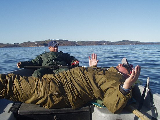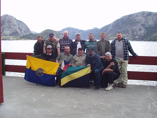 Na schůzi clubu jsme se rozhodli že pojedeme na ryby do Norska stalo se, dohodli jsme si termín na začátek dubna jali jsme se příprav na výpravu clubu. Přihlásilo se nás 12 bylo určeno kdo ským pojede a spaní. 23 března jsme vyrazili na cestu ve 3 autech směr Dánsko přístav Hirschau, někteří takovou dálku jeli poprvé. Já jsem jel v autě s Bambusem, Pančou a Petrem, mezi řidičem a zadními sedaky měl Panča přepášku a mi si z Bambusem nemohli sni natáhnou nožky. V přístavu na nás už čekala lodička a mi tam nejeli s autíčkama a šli hned na prohlídku. Na lodi se k nám připojili Liberečáci jinak brácha Standy, hned jsme byli v restaurantu kde Panča a Bambus sežrali každý snad 5 kg všelijakých mořských potvor. Jsme v Ardalu dostali jsme krásný domek kde jsme byli všichni. spali jsme po 2 a na lodi jsme po 3. První dny jsme si připadali jako břídilové, nic moc jsme nechytli ale učili jsme se rychle. Bedínky se začali plnit a filetky šli do mrazáku. Jeden den jsme nemohli moře tak jsme šli na výlet. Kopeček zvaný Prekenstolen i nekuřáci se zadýchali, trasa velmi drsnou planinou asi 800m nad mořem ale zmakli jsme to všichni, jen Totovka byl doma. Večer jsme byli všichni hezky unavený a proto jsme šli do dobrého bumbání, hrála nám k tomu ABBA v telce a mi popíjeli všechno. Večer to byl super ale nemohu vše napsat ještě ted se něktří červenají, nemčouři si stěžovali na velký ruch. Ale měli smůlu, mi tam byli první. Byl tady konec a jsme žačali balit, zhodnotili jsme výpravu jako super pračku na mozek a proto pojedeme znovu, tak ahoj.
