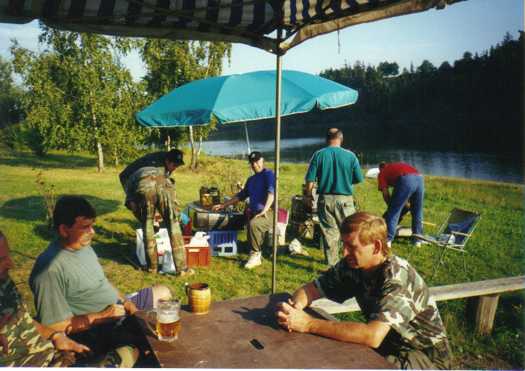 Do clubu byli přijati nový členové František Bauer, Jiří Klein a hlavně první žena která si nic nenechá líbit a je pěkně ostrá - Jiřina Kleinová. Snad i pro tyto své vlastnosti bez problémů rybaří mazi bandou vlčáků a drží si před nimi svůj respekt! Jako tradičně jedeme jeden den předem, večer nám nový kuchař Fanda Bauer (jinak MISTR řeznický), připravil super žrádelko: např.vinné klobásy, steaky, laci pečeni, což nemělo vůbec chybu! Lexoš s prezidentem popíjeli 7 let starou Whiskey a ráno to bylo znát. Byli to zase Vojta, Láďa, Bambus a Maruška, co večer dokázali bavit celý club, což v důsledku znamenalo, že se jim ráno nastoupit do boje moc nechtělo. Největší klání předvedli Martin a Baloun, který vedl dlouho, ale špatný závěr ho stálo titul! Velký propad předvedl Tóth, který tímto závodem zahájil svá hubená léta a klesl až na 13.místo! Hrůza!!!!! Závody se povedly, ryby šly a bylo to dobře, jen poslední mistr nezvládl závod vůbec! Asi když jdou ryby, mistr odchází.....