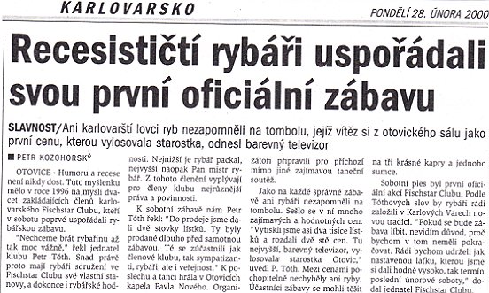 Uspořádání plesu je na nás na členech clubu máme jisté plány které chceme realizovat ktomu je zapotřebí financí. Chceme uspořádat expedice na rybolov do Norsku, proto jsme se rozhodli uspořádat v obci Otovice Rybářský ples. Na schůzi bylo dohodnuto že každý se musí zapojit nad své síli. Jde o jméno našeho clubu, vedení pověřilo Jirku K. aby zajistil sál v Otovicích - Intermontu. Zajistili jsme tombolu která byla jak se říka " OK " připravili jsme občerstvení a jak teplé tak i bar kde bylo vše k chuti.Lístky byli vyprodané hned neboli ihned, čekalo nás 350 lidí kteří se chtěli bavit.Tombola byla tak atraktivní že lístky byli prodány za 20 minut. Hlavní cena tomboly byla barevná televize,kterou vyhrál jeden z našich členů ale rozhodli jsme se jí věnovat dětem do školy.Panča dostal náhradu v penězích hamba mu. Během plesu už bylo slyšet že takový ples tam ještě nebyl. To že tam lidi tahaly různé chuťovky,chlebíčky a alkohol bylo proně normální a najednou obrovský překvapení pro ně bylo že tam je za ceny které jsou lidové vše počínaje jídlem a pitím. Končíme vraních hodinách jsme spokojeni a hlavně naši hosti.
