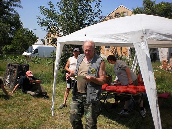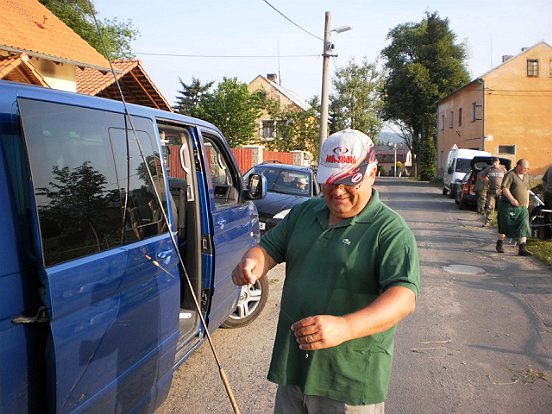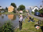 Jedeme na závod do Mezirolí kde naši známí pořádají rybářské závody již několik let a jsou to jak někteří pohrdavě nazývají gulášovky.Pořadatel Motl a Ťiňtěra připravili svoje jezero na návsi a šli jsme do boje. Ryby moc nebraly bylo velmi dustno a voda byla velmi neprokysličená. Někteří borci něco chytli ale ne moc. K svačině podávali dobré špekáčky z grilu a byli dobré z pivkem. Naši clubový borci a to Fanda se Zikmundem obsadili krásné 2 místo a 4 místo. Umístnil se i Zdenda, Vojta a pepenáhoda.Tady pár fotek z průběhu závodů.