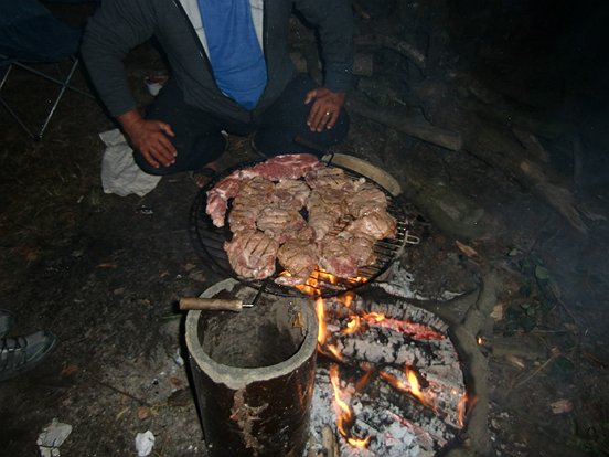 Přátelé pátek večer byla romantika na slovo vzatá. Přestěhovali jsme sezení k vodě, rozdělali vatru a Maruška připravil skvělé steaky z krkovice. Přátelé takovou dobrotu připravenou jen z masa, soli a pepře dokáže jen náš kuchařský mág. Načal se již druhý sud piva a nato, že jsme byli v 12 lidech a z toho 2 členové juniorky, kterým byl alkohol zapovězen, vcelku dobrý výkon....