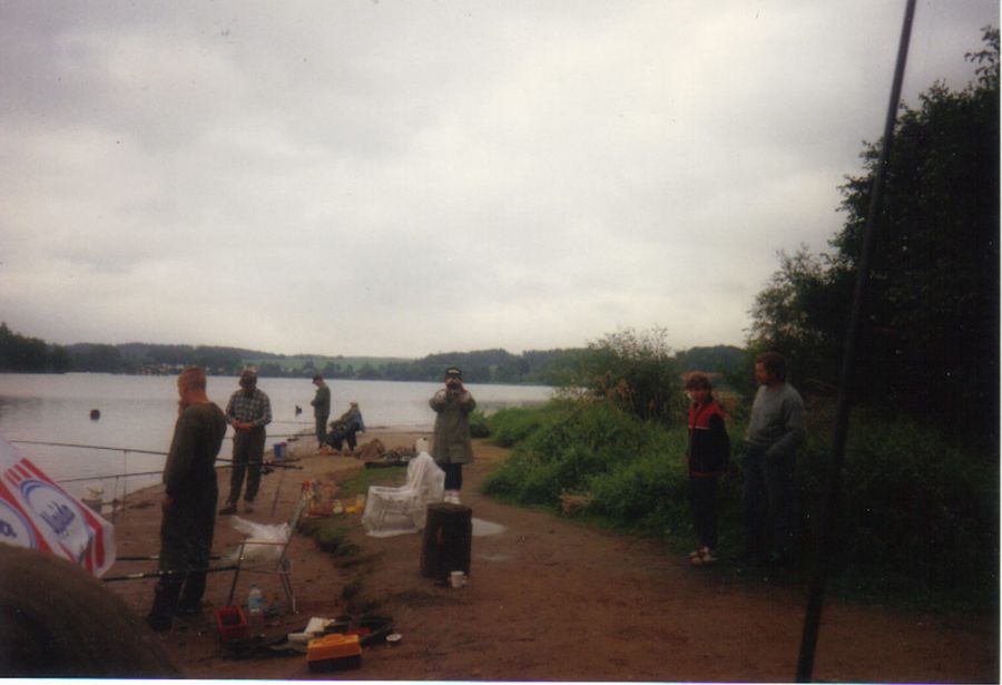 Druhého závodu, který se konal na přehradě Jesenice u Chebu, v druhé polovině srpna roku 1994, se účastnili nový závodníci a to jmenovitě Gurin Ondrej, Šlechta Jiří a Tóth Petr. Měli jsme i nezávislé rozhodčí, kteří byli velmi neúplatní. Na závody jsme jeli už o jeden den dříve, abychom se mohli večer krásně uvolnit, připravit se na velké klání mezi sebou. To se nadále stalo pravidlem a hezkou tradicí!!! Pišta a Jirka si dali mozkovou pohodu ve znamení rumu a becherovky. Hrozná kombinace, večer nás všechny překvapila bouřka zvaná konec světa, o půlnoci bylo vše OK. Jen ráno někteří borci koukali, jak mají všechno mokré. Petr Tóth přijel ráno a mohl si vylosovat své místo, vždy vylosoval forhont což je na jednom z konců palpostu. Bambus tvrdě odmítl svému tchánovi Ondrovi zaplavat a zakrmit místo lovu. Bál se, že by utopil svojí opici. Ondrej si zaplaval sám!!!!!!!! Závody začaly v 7 h ráno a do konce závodu nebylo rozhodnuto, neboď Láďa a Jirka bojovali jako život. Láďa ještě 2 minuty před koncem závodu vedl o pouhý 1 cm před Jirkou, ten však minutu před koncem chytil plotičku a bylo rozhodnuto.