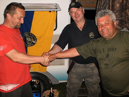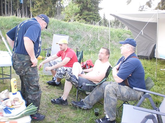 Tak jedeme na první závod našeho clubu a musím říci že někteří hned na poprvé to mají na háku, ale to se pletou budou platiti. Závodů se účastnili jen jmenovaný borci a to Vojta, Jirka, Fanda, Zikmund, Pepča, David a Zdenda. V před večer jsme si udělali jako vždy pohodičku a plaskání žaludečku. Jedli jsme všechno jen zdraví, zeleninu, špek, a klobásky. Sledovali jsme hokej a popíjeli vše dobré jako slivovičku, heberevku, píčvodku, šampus a pivko. Vše na fotečkách, večer proběhl v sázení kde Šlechtové chtěli sázky ale nebyli team tak utvořili team znázvem " Tichý Team " sázek mraky a ráno pohodička. V noci bouřka jako sviňa ale nás to neodradí, jdeme na to. Ryby jdou velmi dobře závod je velmi dramatický všichni chtějí vyhrát sázky jsou moc dobré, ale vyčerpávající. Je konec mistrem se stal poprvé Jiří Šlechta a David se stali vítězi všech sázek, Mašle porazili Baklakli a flanděra je doma, to byl boj. Tady pár fotek jinak vše v ve fotogalerii.