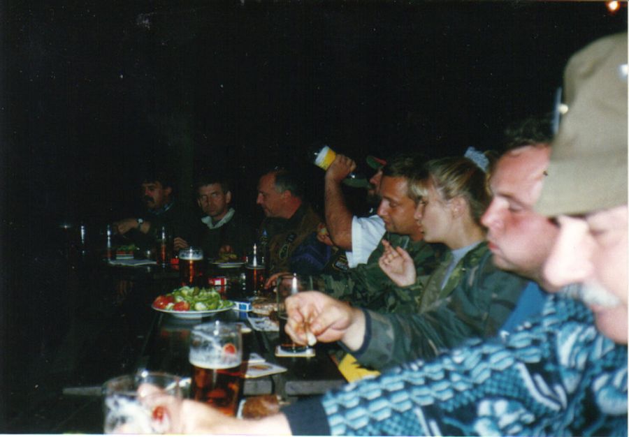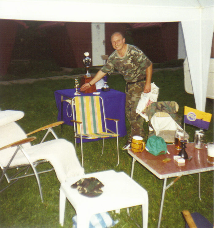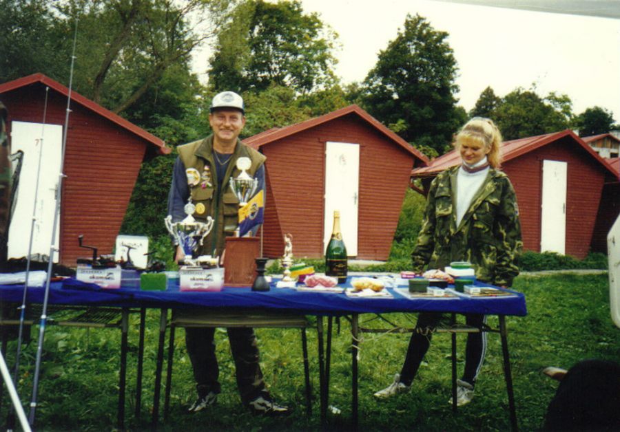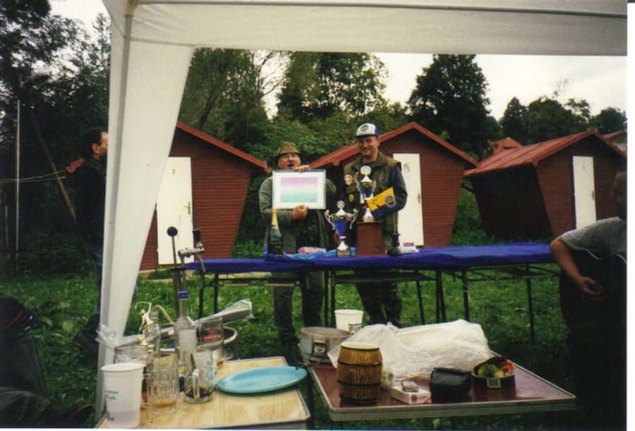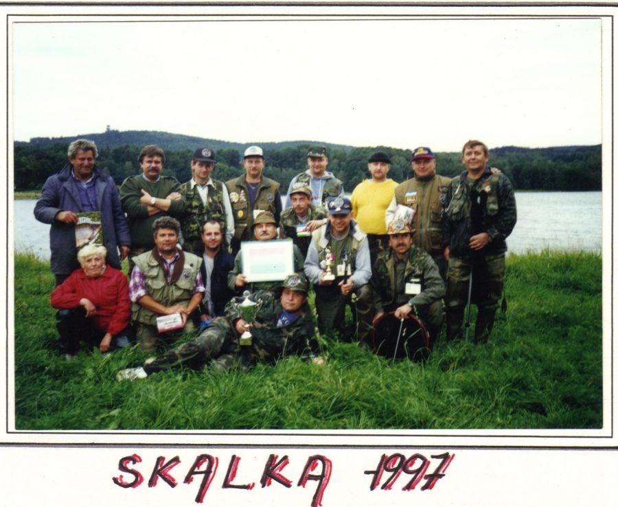 Závody se uskutečnili na přehradě Skalka u Chebu v rekreačním zařízení České pošty. Na večer jsme si připravili super program, pekli jsme maso, které naložil Pišta. Bambus se svým kámošem Vencou hrali na kytary jako Bobík Dylenů a Elvis. Každý člen clubu má svojí sloku hymny a tu musí postupně zazpívat. Skalkou se nesly písně jako: pionýři malované děti, katúša.... Ráno nás překvapil déšť, Bambuko měl vykoupaný červy, ale nevzdal to, šel do boje, všichni jsme do toho šli naplno. Mistr Matoušek prohlásil jak si snáma (vytře prd.... ) pohraje, ale že prohraje netušil. Závod byl na velmi dobré urovni, každý chce titul v clubu nejvyšší. Naše rybolovná technika dostála velkých změn, všichni zjemnili. Jak na síle vlasce tak v prutech, koupeny byli i 5m plavačky. Mistr v plavané Jarda doufal jak si pohraje s těmi bobkaři, ale jak se říká neříkej hop, dokud jsi nepřeskočil. Byl s toho celý mrzutý, že on majster a je jenom druhý. Neva důležité bylo odreagování od každodeních starostí. Příště Jarouši musíš více ukázat.