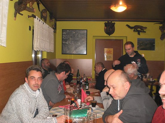 Prezídium uspořádalo clubovou večeři, místo zajistil Pepa a to v restauraci Na blbým místě, oproti loňsku byla účast zase jen pro nás, stále stejný členy – škoda. Přišel i náš Ondra a tím to bych mu chtěl popřát hodně zdravíčka, pohody. Je škoda že se někteří stále straní akcí pořádaných clubem.