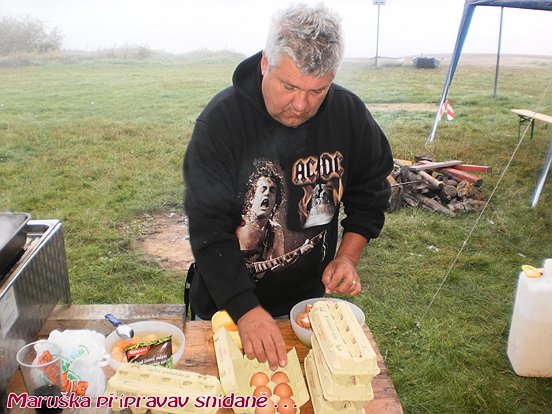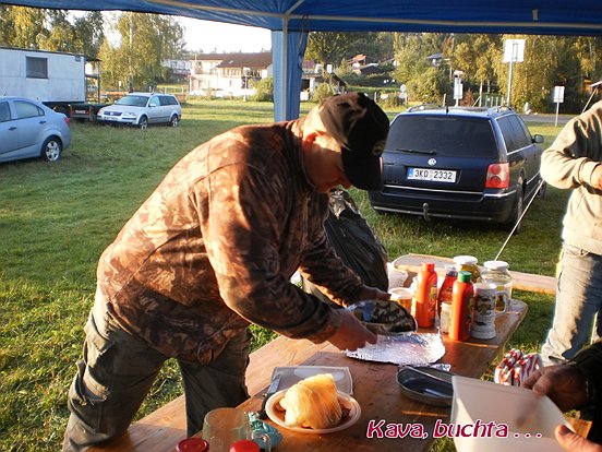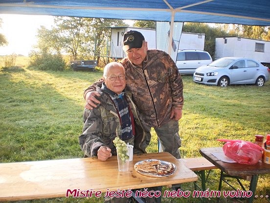 Jak bylo rozhodnuto tak se stalo, jedeme na hlavní závod clubu o titul pana mistra rybáře. Místo určení přehrada Hracholusky kemp Radost. Jako první přijíždí Flay team a hned za ni mi Mašláci. Maruška a prezident postavili karavan s kuchyní a okamžitě se pustili do vaření pro club. Ostatní postavili přístřešek a lavice, výčep a alkohol nálevnu.Večer proběhl velmi dobře začali jsme papat a bumbat, potom se losovalo a udělovali se palposty. Večer byl jako vždy ten nejlepší, byla muzika a to AC DC na dvd kde se někteří dobře utrhl, že Já I. Ráno byla kosa jako sviňa bylo jen 1C° Maruška a Fanda připravili smažená vajíčka se slaninou a cibulkou. Byl čaj i káva, někdo si dal i léčebné pivko bylo dobré. Závod začal pro některé dobře a pro některé byl hodně slabí ba slaboučký. K trháku nasadil Zdenda jak tvrdil Jirka Šl. Bylo to od něho nesportovní, házel daleko, krmení měl lepší než on a tahal rybu za rybou. Na oběd Maruška s Fandíkem udělali Boloňské špagety se sýrem, buchty(od Povolných) , kávička a groček.