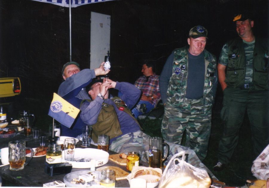 Tak jako vždy jedeme předem abychom mohli oslavit krásné výročí našeho kamaráda Ondry alias Bandyho, slavil krásných „6O“ let - club mu nechal udělat krásný nůž z gravírováním "Na památku Fischstar club " . Večer proběhl velmi OK, byla muzika, pití, žranice (kolena, steaky, držtková polévka, zelenina) a na závěr náš oslavenec předvedl krásný ohňostroj vlastní výroby. Závody byly velmi dobré, jelikož se všichni snažili stát vítězi. Hlavně náš nový prezident Já II. Tóth měl co odčinit a tak bojoval, jak Bandy tvrdil, že až kurevsky. Musel, proto že celý rok poslouchal, jak je měkoučkej jako myšie bruško!Na závod se připravil velmi svědomitě, krmení skutečně připravil na bílou rybu a udělal dobře. Jindy připravil krmení na kapra a šel do jesetera. Druhý den po závodech zůstali někteří borci ještě na rybách a Bambus předvedl na kameru jak se má chytat. Dal si k tomu s Láďou 3x džointa (nějakého koření), a pak byli k neudržení. Oni tvrdí, že prej byli jenom jinde. Ten den se vyvedl moc hezky.