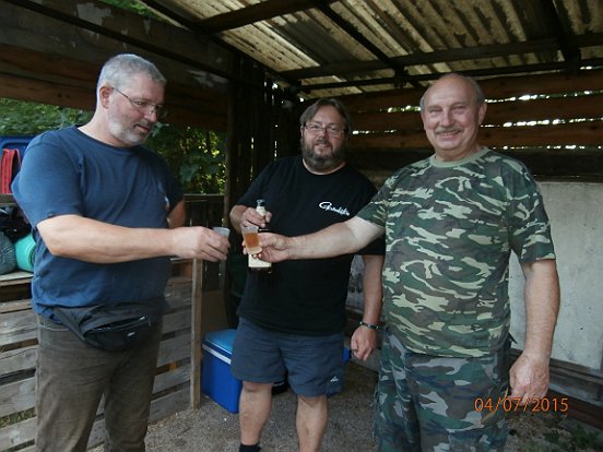 Tak jsme se rozhodli a vyjeli na rybník Radost na noční rybolov, Vojta, Standa, Roman, Bříza a jeho mladej. Večer jsme se tábořili, bumbali, pekli špekáčky, klobásy. Večer chytali krásné ryby, i úhoře a to nejdůležitější všichni jsme spali pod širákem to byla bomba jako za mladých let. Večer se moc povedl snad příště kdo se přidá......pak jsme odletěli domů.....