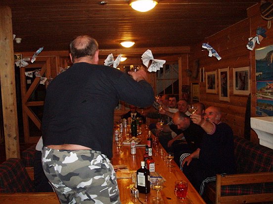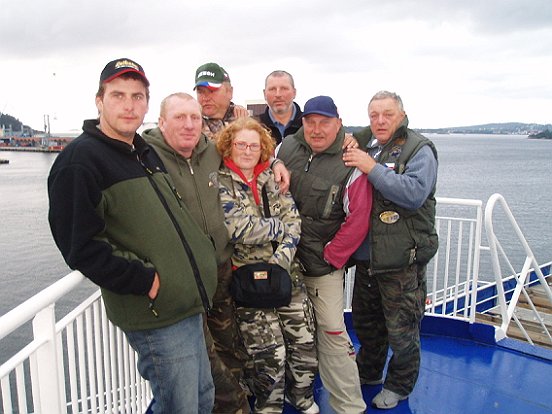 Konečně nastal ten slavný den a to pátek 8 září v 7 hodin ráno, vyrážíme ráno směr Dánsko jsme všichni jedeme ve 4 autech. Jsou přestávky pro kuřáky a hlavně svačinky, spojení máme přes vysilačky které dodal Pepa Lexikon. Počasí nádherné a teplé cesta nám utíka jako víno....jsme v přístavu nalodujeme se. Procházíme lodí a papame, bumbáme někteří až do rána bíleho. Vylodujeme se na kruháči čestné kolečko než se Šlechtovka trefil zprávným směrem, jsme na místě. Rychle ubytovat a honem na moře, jde nám nádherně máme tresky i velké makrely. Další dny byli velmi super ryby jsme chytali a to, polaky, mníky, pyskouny a makraly. Bedínky se krásně plnily ale to není podmíka naší výpravy ta je vyprat si mozek. Večer vždy Maruška na grilu připravuje všelijaké dobroty ryby, kolena, klobásy je pivko a slivovička. V chatce u Vojty Karel upekl kachnu, zelí, knedkíček a plznička na spláchnutí, ale ten bordel po Karlovy no Norek asi musel vymalovat !!! Na jeden den byla vyhlášená soutěž v lovu, vyjelo 5 lodí soutěž trvala od 13 do 17 hodin všichni tam v přístavu potom čučely jako vrány proto že jsme nachytaly skoro 250 kg ryb všech druhů vítězové nachytali 52 kg ryb Je konec připravujeme se na odjezd, vše je zabaleno a ráno vyrážíme na Stavanger a domů. Cestou hodnotíme výpravu a je to jasný za dva roky pojedeme znovu, tak ahoj všem a za dva roky v Korshamnu....